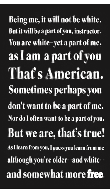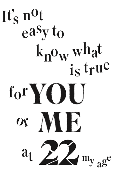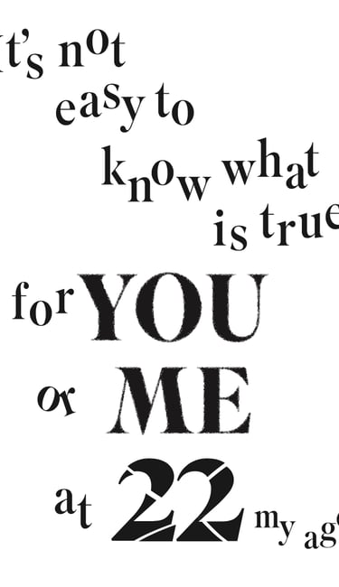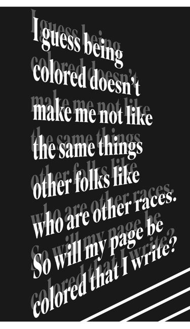 This design transforms Langston Hughes' poem Theme for English B into a compelling visual poetry piece. Using expressive typography and visual imagery, the artwork reflects the poem’s themes of identity, race, and self-expression. The contrast of bold and delicate typefaces mirrors the poem’s introspective yet assertive tone, while the imagery evokes a sense of personal and cultural reflection. This piece serves as both a visual interpretation and an artistic tribute to Hughes’ powerful words.
